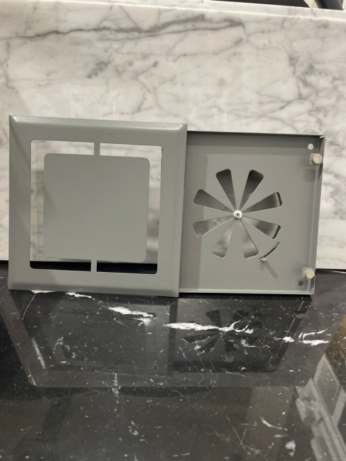 Конструкция продумана до мелочей. Воздух поступает в вент шахту по периметру решетки при том само вентиляционное отверстие не видно совсем. Оно закрывается верхней панелью, при этом не перекрывая доступ воздуха.