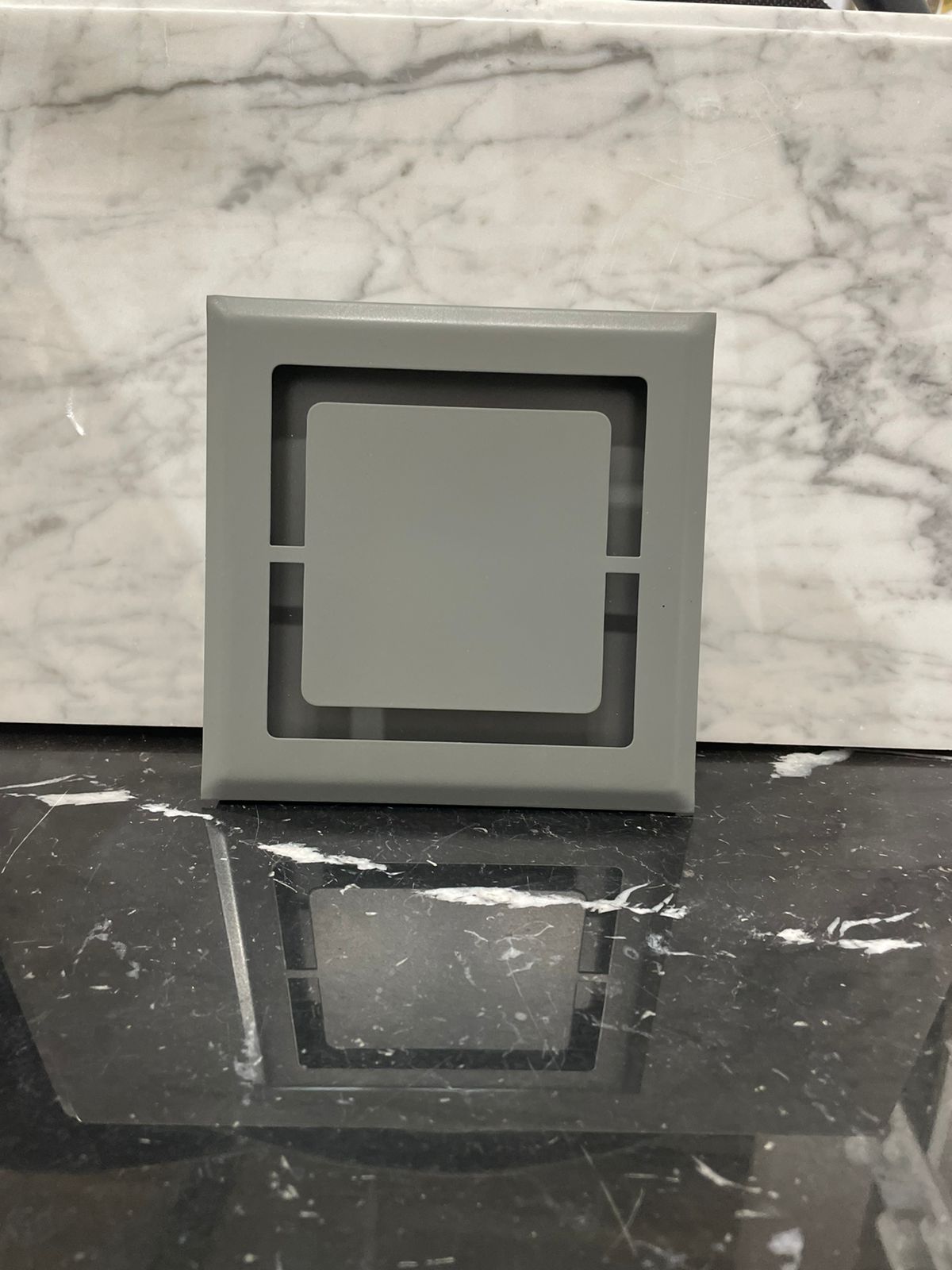 Рамка прикрепляется к стене или полотку при помощи саморезов или клея, а верхняя часть с глухой панелью фиксируется к рамке при помощи неодимовых магнитов.