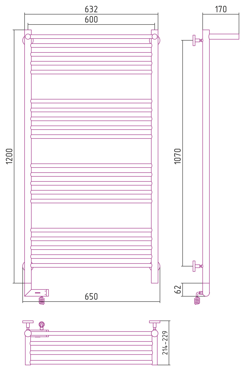 Внешние габариты (высота х ширина х глубина)(мм) : 1262x650x214-229