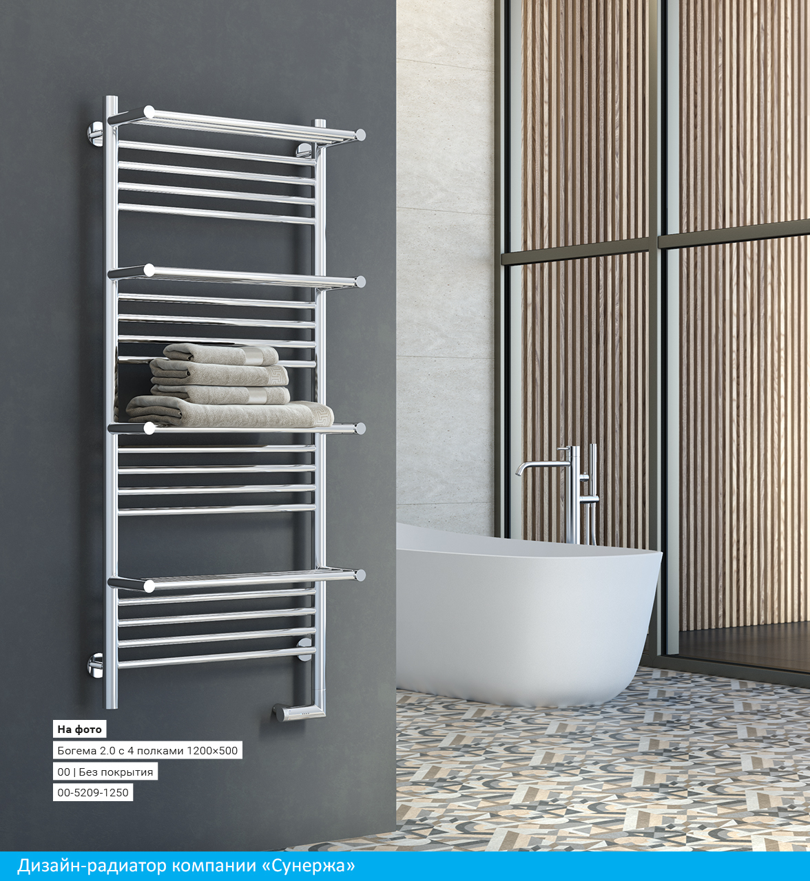 Полотенцесушитель электрический Сунержа Богема 2.0 с полкой 1200x600