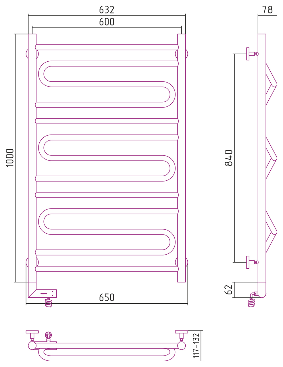 Полотенцесушитель электрический Сунержа Элегия 2.0 1000x600