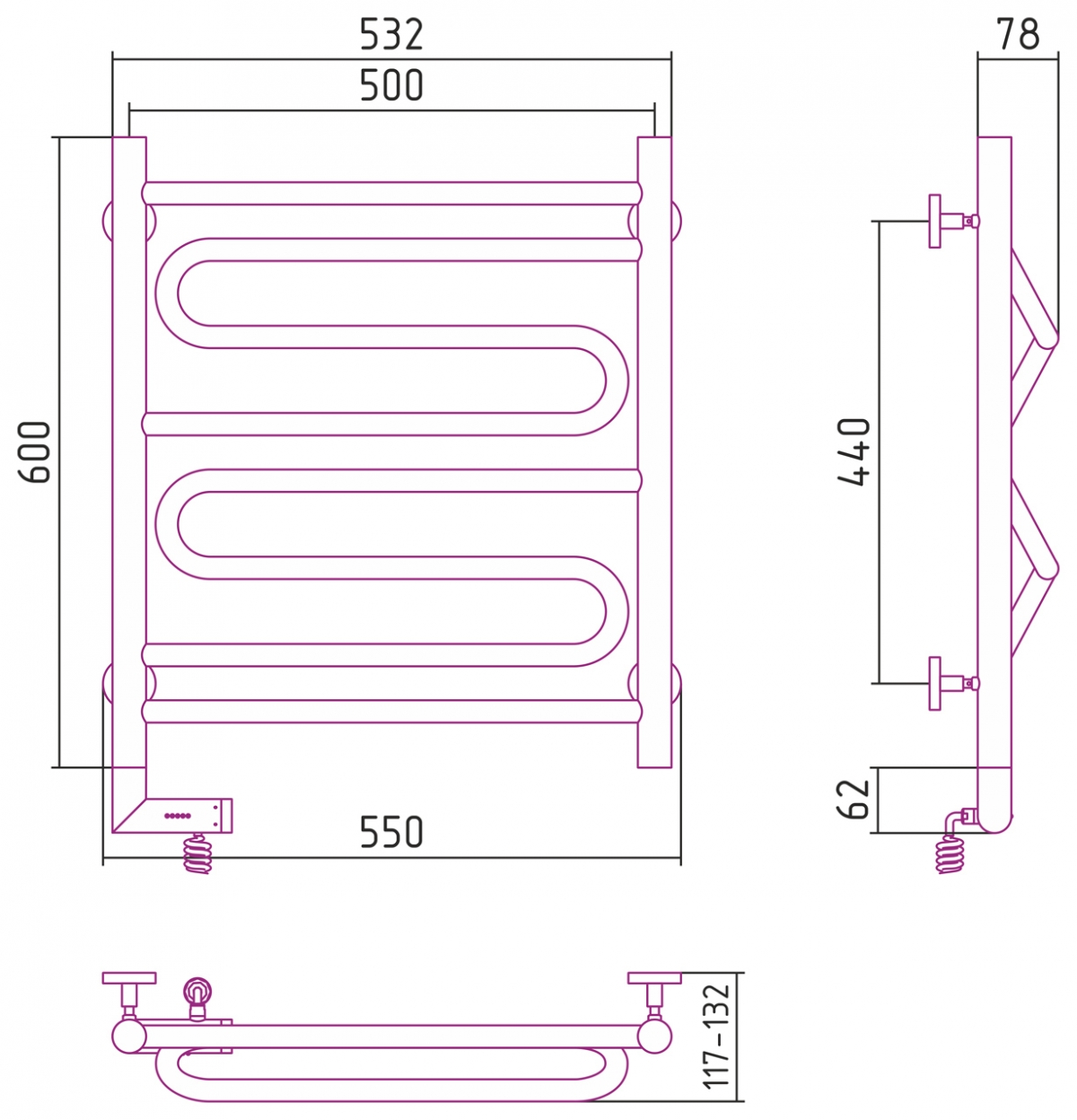 Полотенцесушитель электрический Сунержа Элегия 2.0 600x500