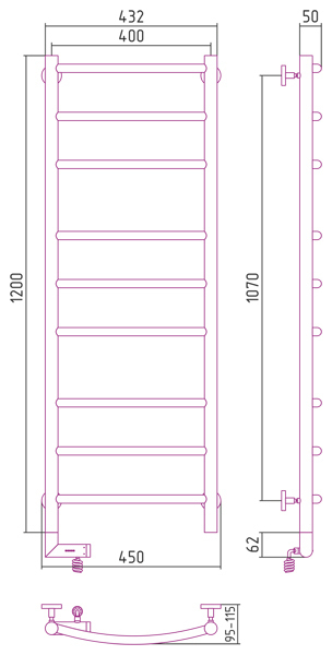 Внешние габариты (высота х ширина х глубина)(мм) : 1262х450х95-115