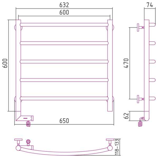 Полотенцесушитель электрический Сунержа Галант 2.0 600x600