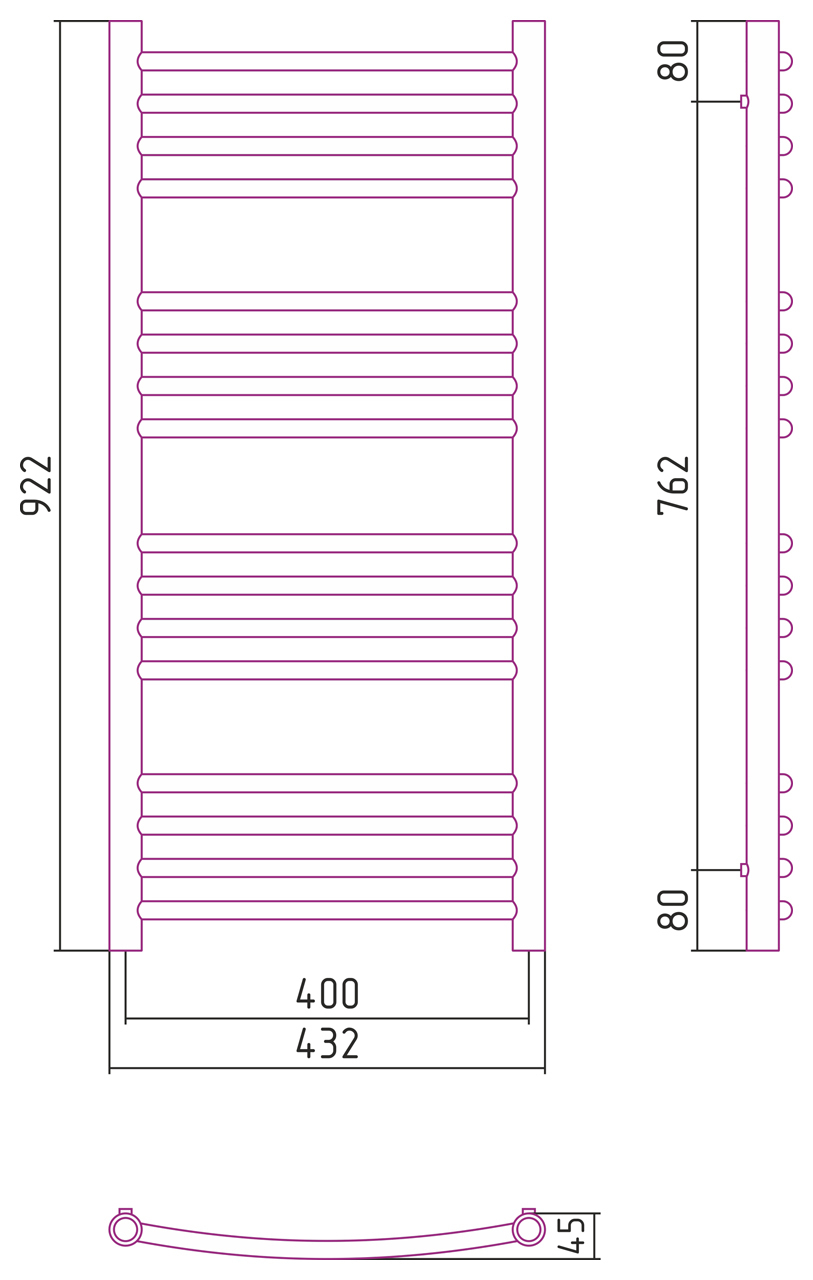 Полотенцесушитель комбинированный Сунержа Богема-ПРОФИ выгнутый 1000x400. 00-5101-1040