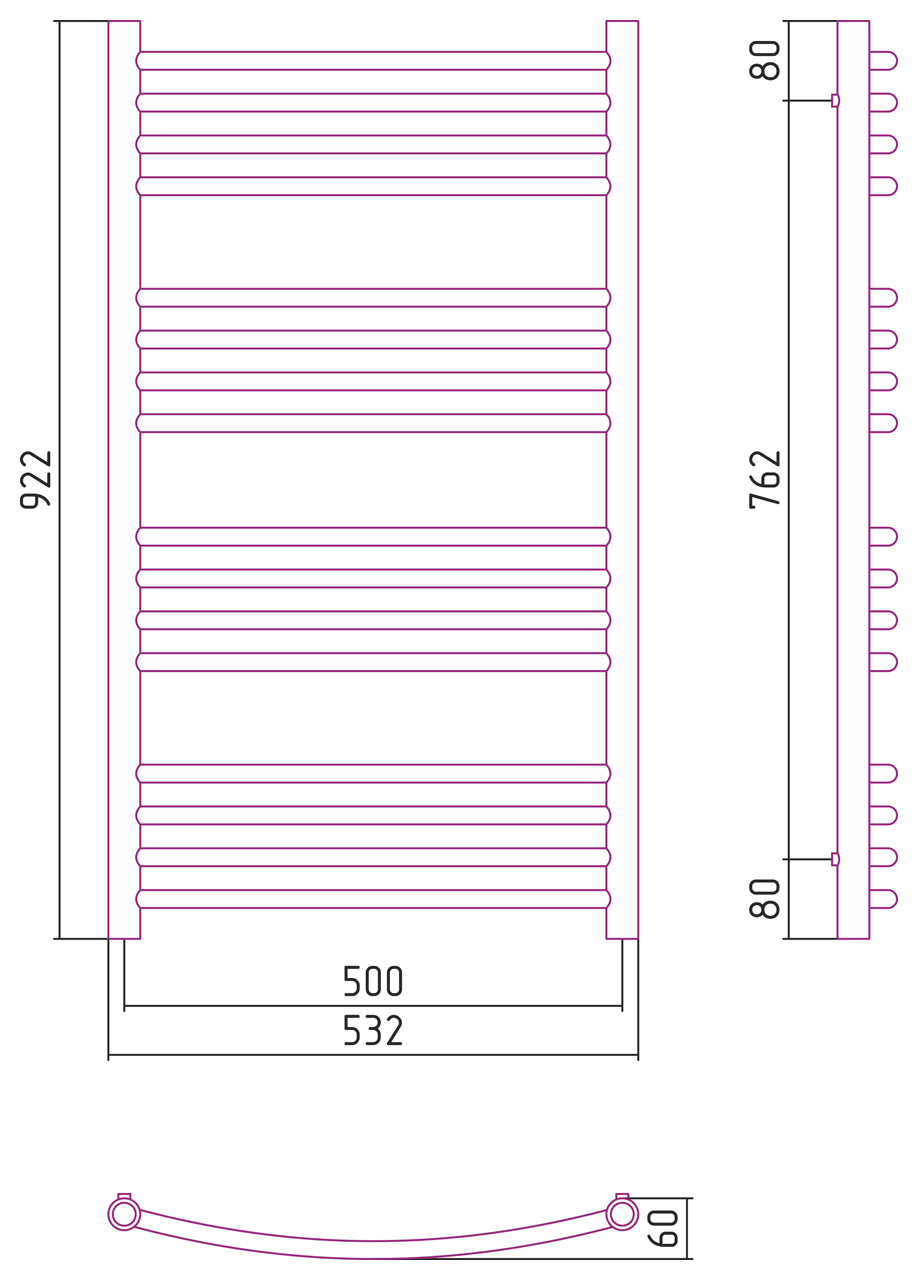 Полотенцесушитель комбинированный Сунержа Богема-ПРОФИ выгнутый 1000x500. 00-5101-1050