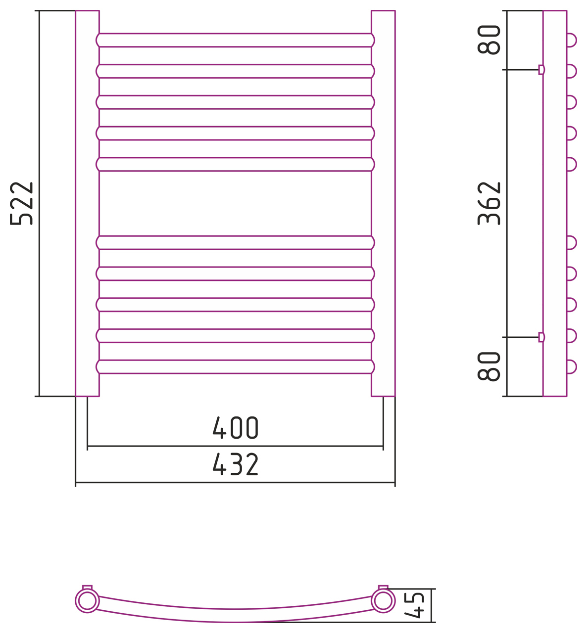 Полотенцесушитель комбинированный Сунержа Богема-ПРОФИ выгнутый 600x400. 00-5101-6040