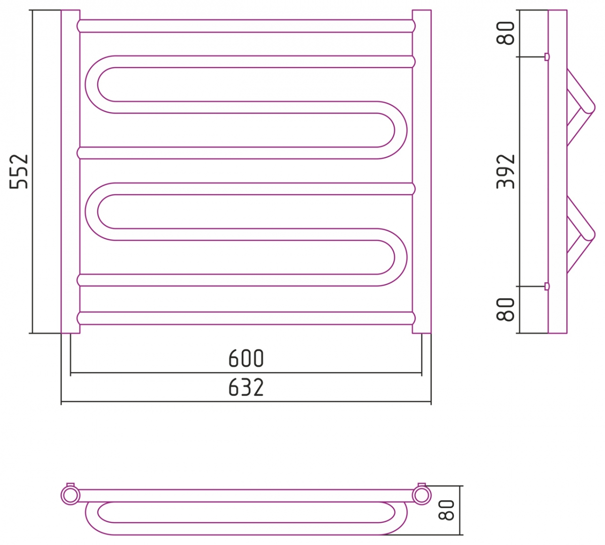 Размер полотенцесушителя:600x600