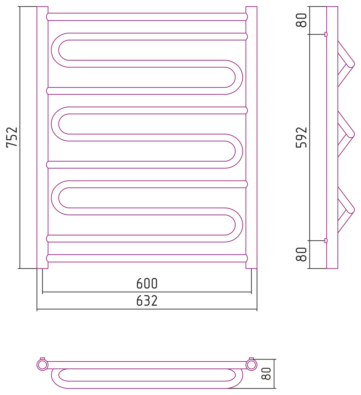 Полотенцесушитель комбинированный Сунержа Элегия-ПРОФИ 800x600. 00-5105-8060