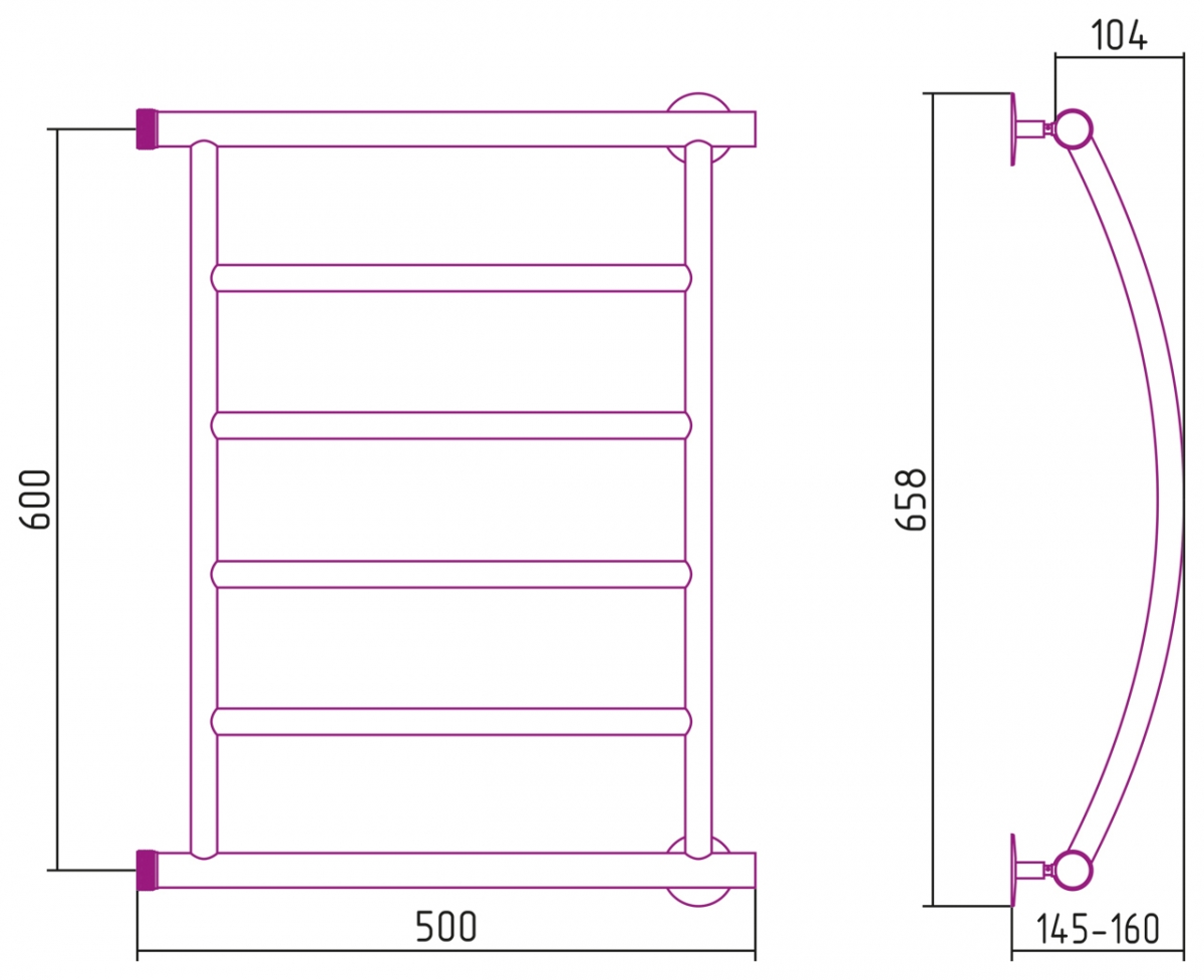 Полотенцесушитель водяной Стилье Минор 0602 600x500