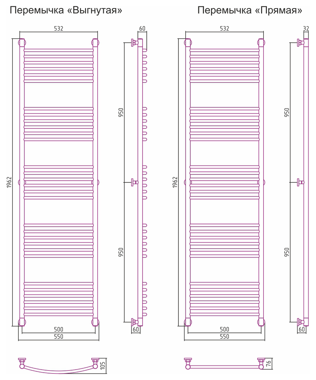 Полотенцесушитель водяной Сунержа Богема+ 1900x500