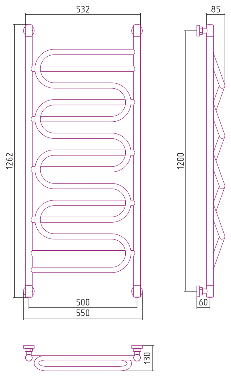 Внешние габариты (высота х ширина х глубина) (мм) : 1262x550x138