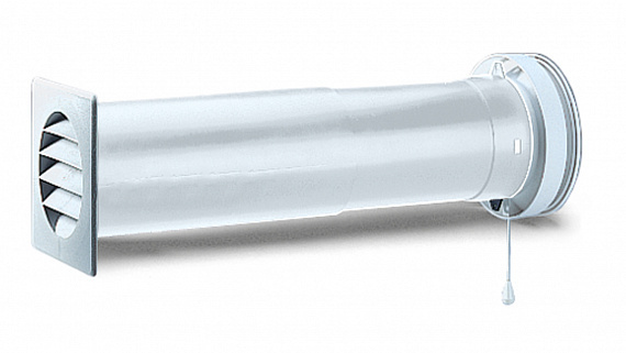 Простой монтаж в проемы в стенах. Телескопическая труба вставляется снаружи, регулируется в соответствии с толщиной стены и заштукатуривается. После этого на нее при помощи зажимов или дюбелей крепится дождезащитная решетка. Клапан устанавливается изнутри. При расположении вблизи нагревательных элементов приточный воздух будет иметь приятную температуру. Необходимо предусмотреть доступность фильтра для его замены.