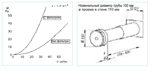 Объемный расход в зависимости от перепада давлений определяется величиной зазора тарелки клапана. Мощностные характеристики приведены в диаграмме. Вносимое затухание: Rw: 30 – 35 дБ (в зависимости от способа монтажа и толщины стены; сравнимо с остеклением, класс защиты 2 или 3).