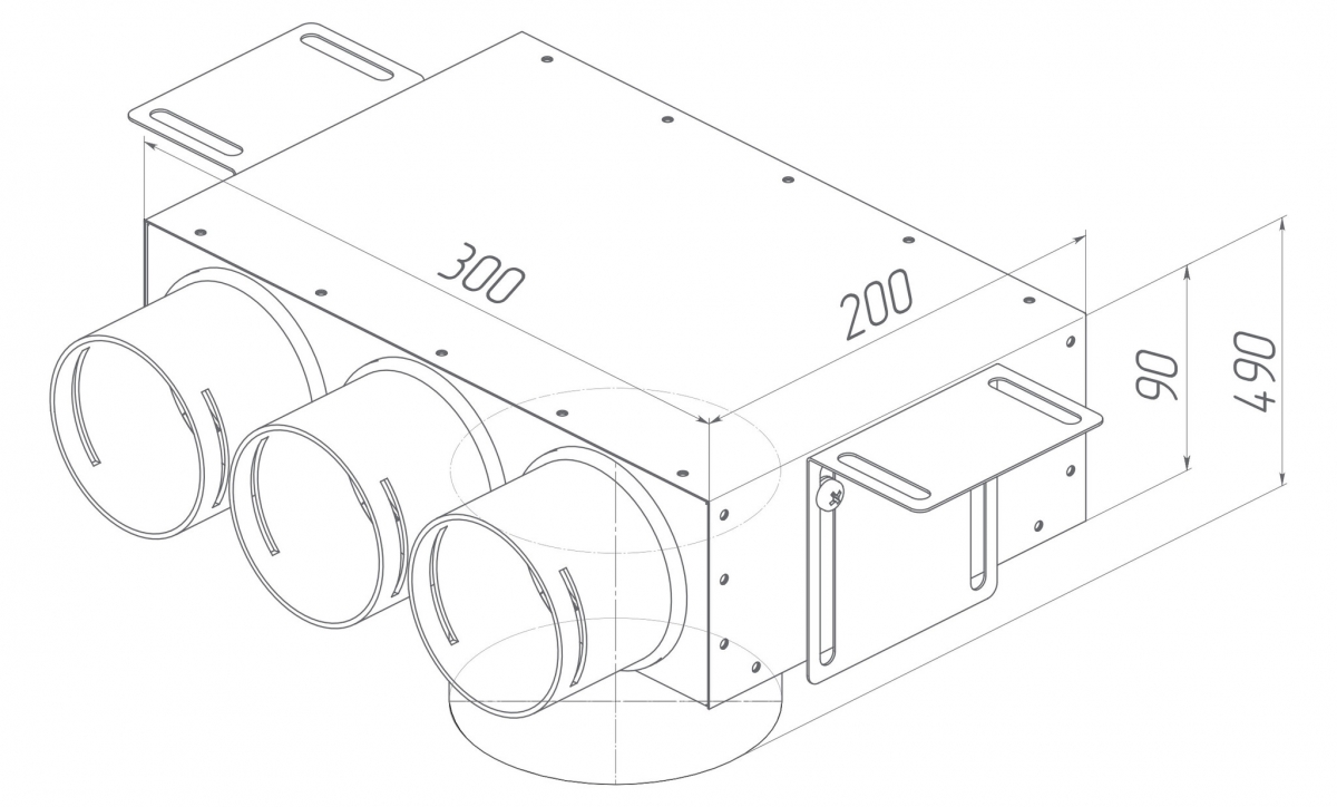 - Размеры (с присоединительными фланцами): 200 х 490 х 264 мм