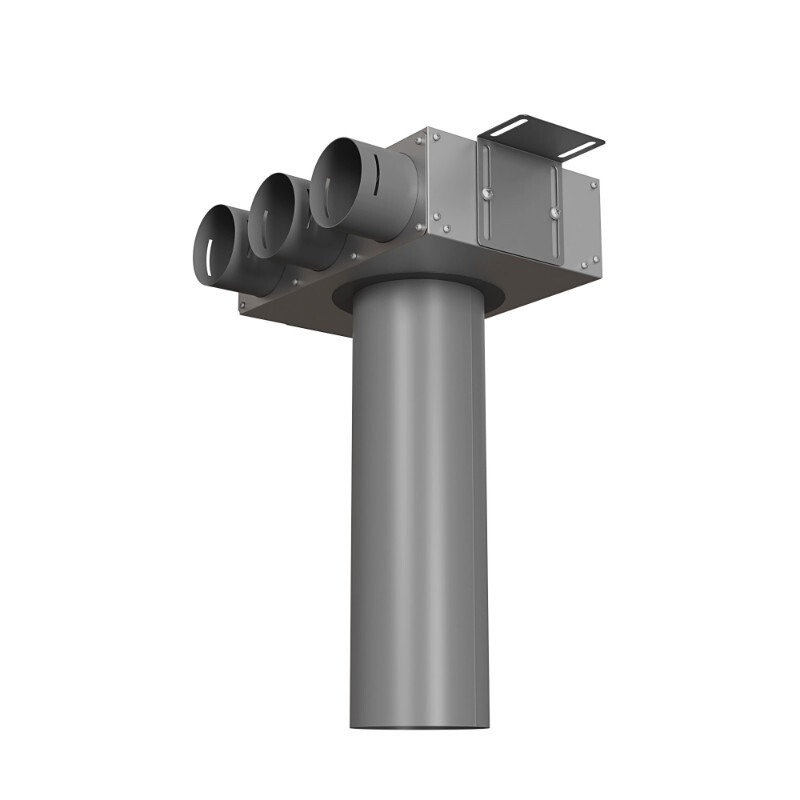 Монтажный пленум VPSL 125/75х3 предназначен для установки анемостатов и диффузоров в системе вентиляции на основе гибких вентканалов Provent диаметром 75 мм. Фланец для подключения диффузора/анемостата диаметром 125 мм и длиной 400 мм, три фланца для подключения гибких воздуховодов 75 мм.