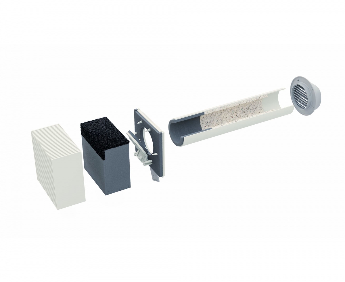 За счет разницы в давлении воздушный поток с улицы по каналу в стене затягивается в помещение, а встроенный в клапан фильтр очищает воздух и защищает от шума, пыли и насекомых.