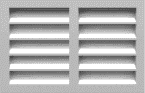 • Наружная вентиляционная решетка для больших проемов с усилением в виде перемычки из тавра 30 х 30 мм. и Z-образными жалюзи неподвижно закрепленными под углом 35 градусов.