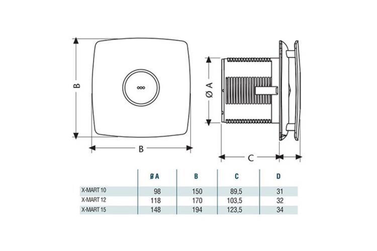 Вентилятор CATA X-MART 10 inox S предназначен для вентиляции небольших и средних помещений. Отличается эксклюзивным дизайном и простотой в использовании.